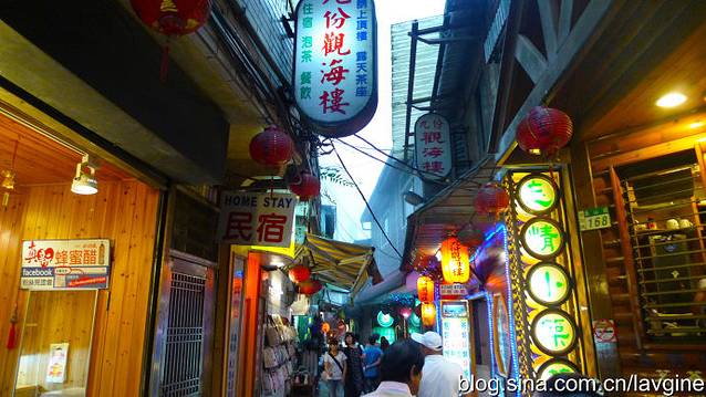 仅吃一项,观光客一定不会错过九份独特的芋圆,这种用芋头做成的传统的风味小吃,是纯手工的美食,红豆芋圆汤,芋头的香甜,加之滑润的口感,色香味俱全。此外,还有草仔粿、芋仔番薯、以鲜鱼制作而成的鱼羹、香酥可口的鸡卷等等,花样之广、选择之多,真让人眼花缭乱。乡土小吃芋仔番薯、九份第一家茶坊及九份文史工作室皆位于此路上。然近年来因文明的冲击,九份已逐渐步上现代化的脚步。石头铺就的街道两旁全是商铺,街上的人摩肩接踵,但却绝无大声叫卖和喧闹的音乐。人们慢慢地走,细细地看,喜欢什么就停下来问问价钱,尽管人多,却没有喧嚣嘈杂之声,让人感觉非常舒服。
