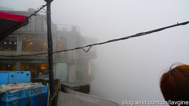 到了观景台,因为有大雾,所以看不到下面的风景。
