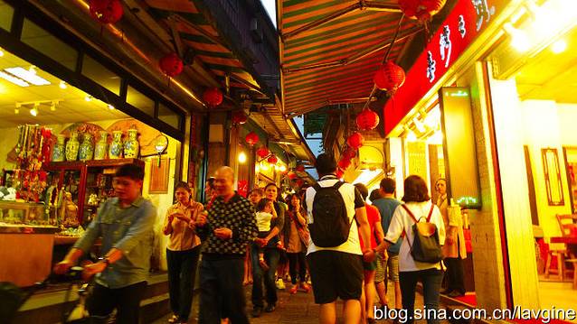 九份的街道都是窄窄小小的,其中的基山街是最热闹的一条。这条颇有味道的老街,体现了台湾特有的食文化,是九份最繁华的商圈。街两边是百余家小店面,传统小吃、饮食店、民艺店,吃喝玩乐住全都包了。