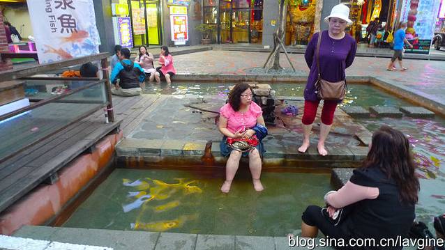 到处都是可以泡温泉的酒店,小铺子,就像小吃店一样多,像这样的小鱼温泉,给80台币就可以好好的泡上一会解解乏。
