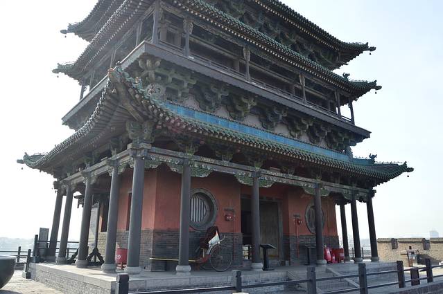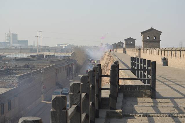 到了平遥古城 由于它的动车站 离古城较远 所以 得乘坐车站外面的旅游公交车 公交车就在动车站外的广场上 每人3元 直接就送到了 古城的北门 还是比较方便的