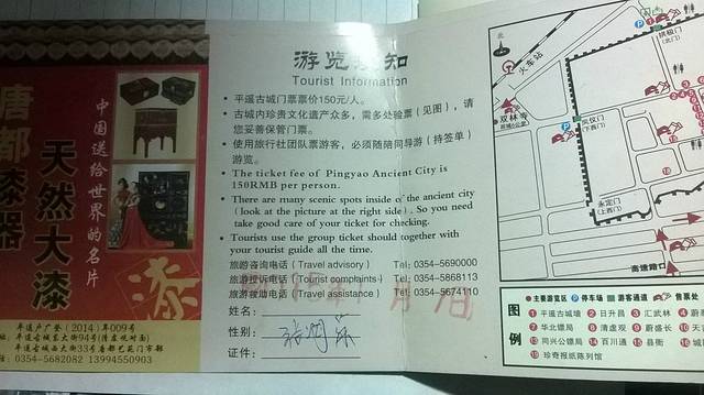 平遥古城 其实不大 步行足矣 随处可见 旅游地图