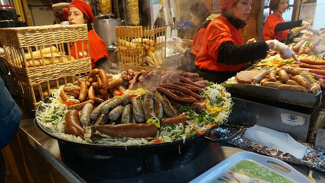圣诞节期间,铁塔下边有圣诞集市,中午就吃的这大香肠和法棍。