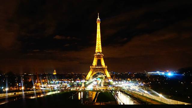 去的当天由于太累,睡到了五点多然后出门。所以就去了埃菲尔铁塔先去瞻仰一下。我们站在对面的高台上,塔身灯光闪闪,十分好看。