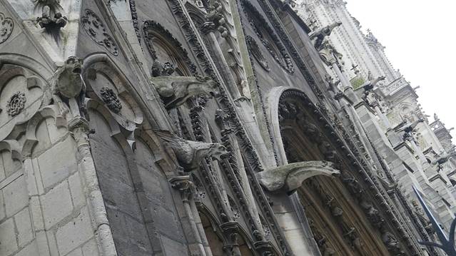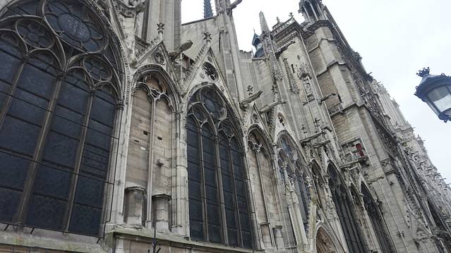 去玩塞纳河,我们就去向巴黎圣母院,Notre Dame.这几天每天都阴天,这么多照片又修不过来,亮度真的很差。这是圣母院的正脸。圣母院有2个入口,一个是免费的,就是从这个正门排队,然后进去参观。另一个是个tour,也就是有人带你游览一二三层并且附带讲解的,所以是需要付费的,要去这张图的圣母院的左边去排队。