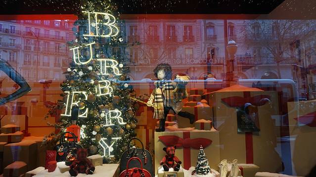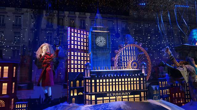 去完歌剧院,就去了老佛爷和巴黎春天,这两家百货公司都是连着的。今天的橱窗都是BUBERRY系列,十分好看。下面我分别照了几张。