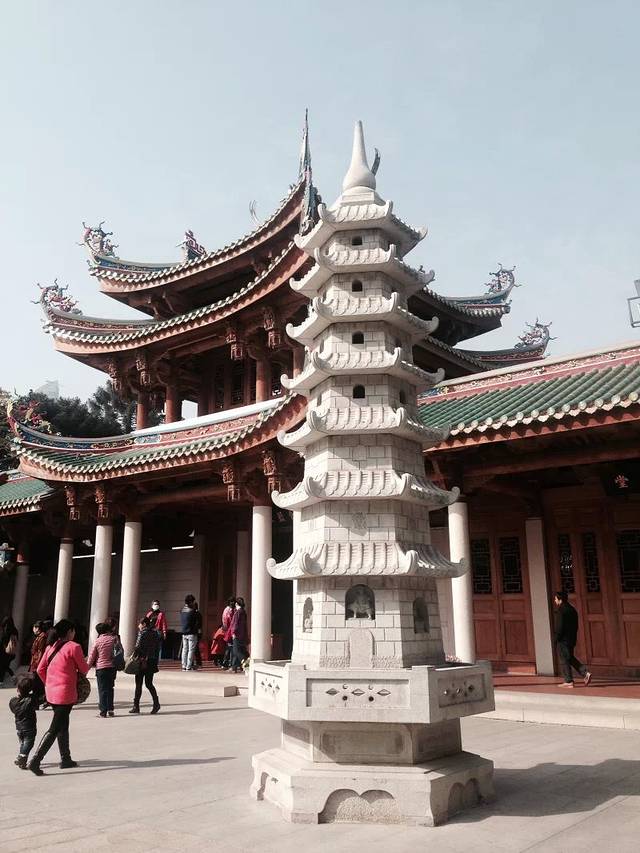 第二天早上,9点多出门,我们今天打算在厦大附近玩。我们首先去的南普陀寺,很多人,就在厦大附近。坐车的话去到厦大西村站然后走几分钟即到。我们下车后不知道怎么走,然后问路,有两个阿姨很热心地说她们也刚好去,我们可以跟着她们(当然出门在外也要多加小心,遇到别人特别热情地带路也需要警惕,)南普陀寺就在厦门大学旁边,不用买门票。里面还有素菜吃,也有南普陀素饼卖。挺多人买的,我们也买了几盒带回去。在各种殿的后面,还可以循着山路一路上去,视野好好。