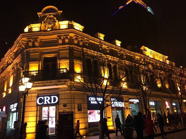 从冰雪大世界回宾馆时拍的,夜晚中央大街也很美。