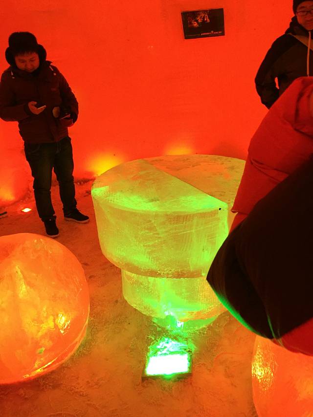 总得来说,很多都需要排队,有几个洞口,进去后是这种冰桌子冰椅子,还是得排队往里进