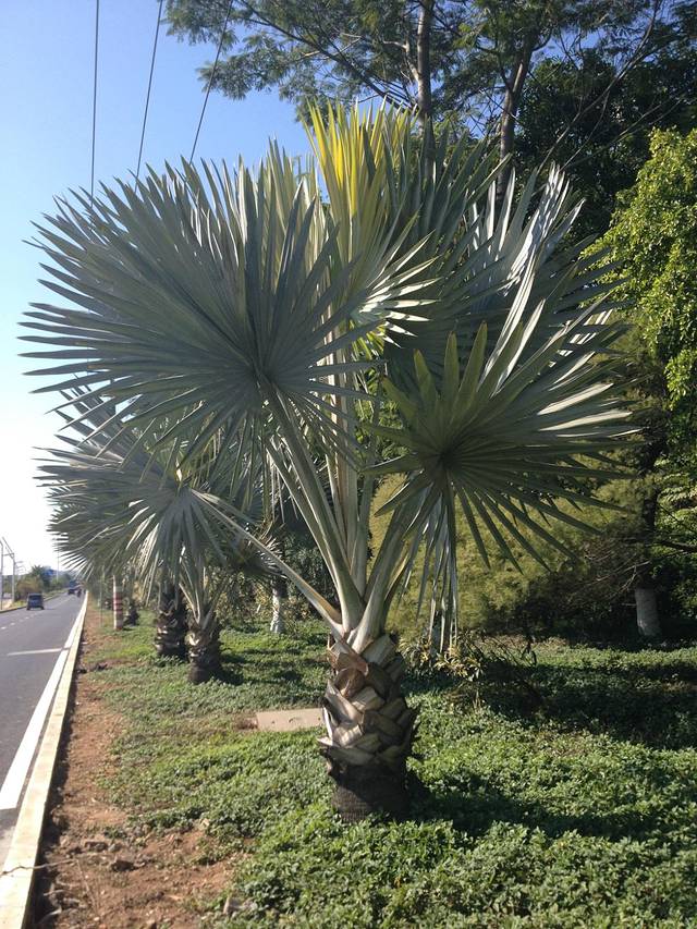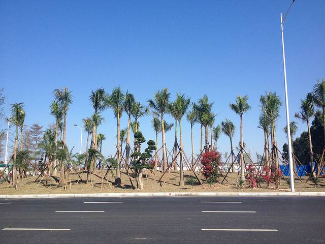 等着过马路的椰树