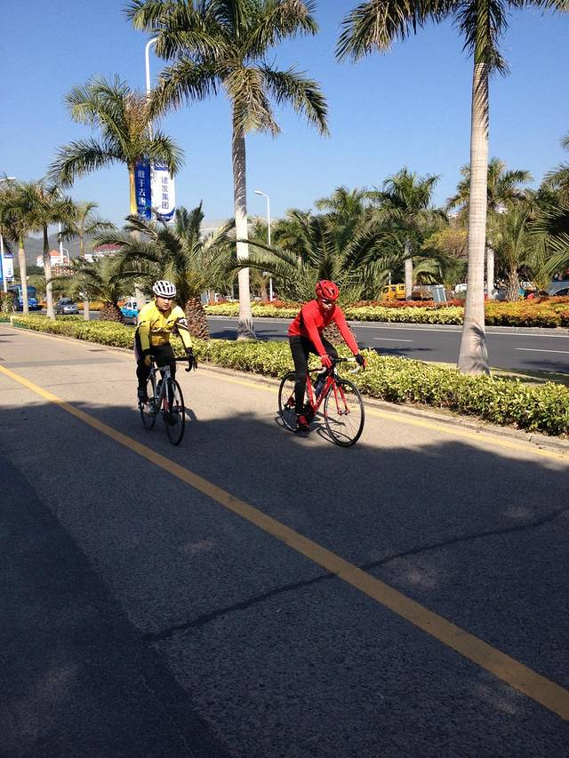 骑行。 在第三天,我同一位来跑拉松的小伙伴分别租了辆自行车(第一次骑死飞),沿环岛路骑行了三十多公里,回来吃海鲜时,屁股都不是自己的了。