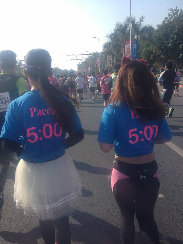 Pacer--配速员, 俗称兔子,为了激励参赛者,效仿猎人追兔子的游戏, 她们是全程5个小时的配速员, 如果她们够专业,跟着她们能5小时完赛, 还有其他不同速度的配速员。