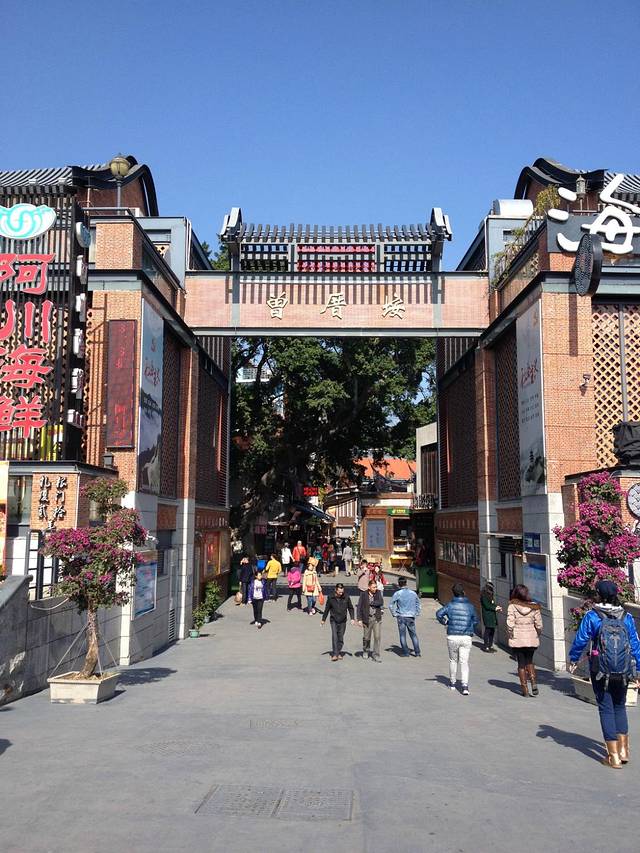 曾厝垵大门。大门左边是ATM, 右边是卫生间,掏空你的钱包,塞满你的胃,多周到。
