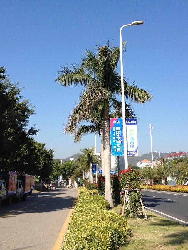 当我踏出机场,就被眼前的景色吸引住了,椰林树影,红色的凤凰花恣意的开着,丝毫不用担心明媚的阳光有一天终将逝去。一时之间我不知道何去何从, 只想拥抱这温暖的大地, 只想去走走,没有目地的,用眼睛,鼻子,耳朵,肌肤来感受这天堂般的存在,甚至仿佛自然的美景能打开人的第六感。此时上午十点多,用脚步来踏实这机场旁边新铺的沥青路吧。