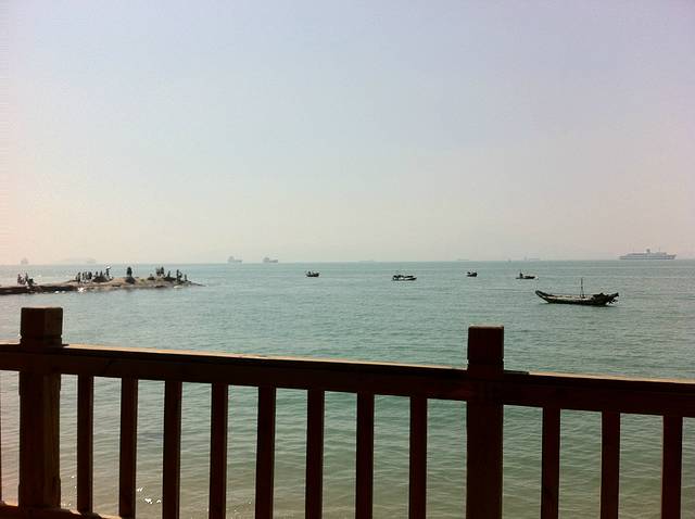 逛着逛着还偶遇了以为佛山自由行的朋友,分别前一起相约在厦大有缘再见,最后还是没遇到...瞎逛着走到海边,好久没见到海了,好激动的说。因为大海对于我有一种特殊的意义,所以在海边呆呆地坐了半个小时,后来因为太晒和太饿了,就回龙头路找吃的了。因为林氏鱼丸太好吃了,所以又吃了一次,还有鱿鱼焖豆腐,马拉桑果汁。吃完就回旅店收拾东西准备出发中山路了。
