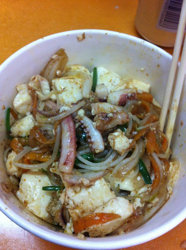 这个是康家龙头鱿鱼焖豆腐,个人认为很油,而且味精很多,不是很推荐