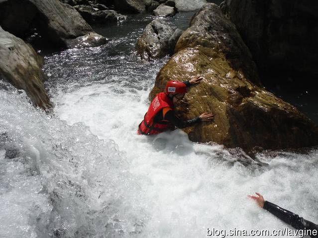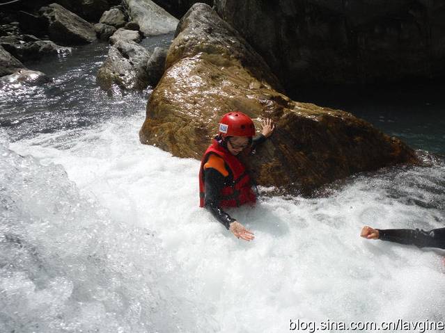 刚到第一个地方,教练就让我站立在这个微型瀑布里面,让我先预热下。。据说这个地方是为了让下游产下的小鱼仔能够游上去的要道,没有这个地方,溪水里的鱼就不能繁殖;