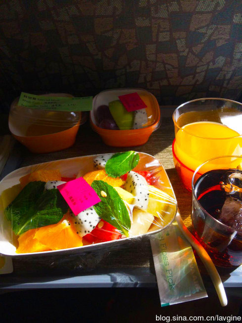 这次尝试了台湾的长荣航空,北京-台北三小时直飞,票价3200.可在线预定水果餐,海鲜餐,糖尿病餐等等;因为是下午飞,所以我预定的是水果餐~
