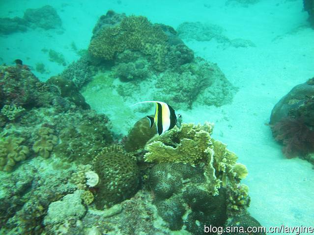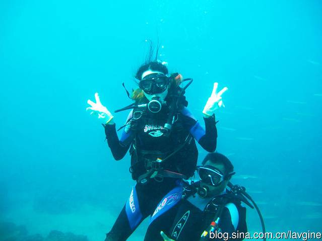 后面有一群鱼儿游过。因为自己不会游泳,教练快速的托起我照相,但还是慢了点~这场景,我只在电视上见过,没想到自己还有潜水的一天~