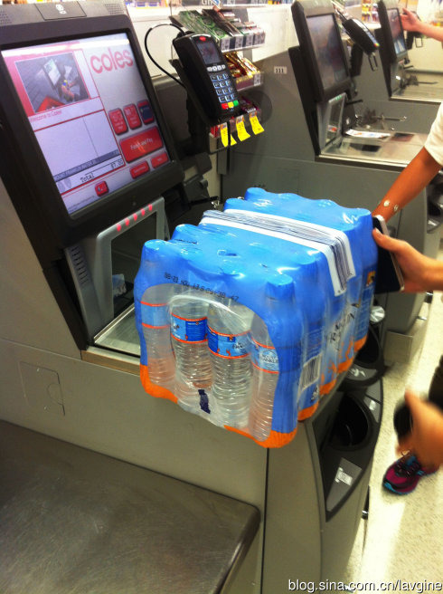 要徒步,水是必不可少的。澳洲的超市大多有自助式交款。跟银行提款机一样,自己刷一下价格码,用信用卡直接结账,省去了排队的痛苦,节省了时间,十分便捷。