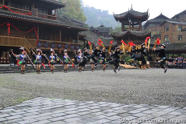 11月的贵州也挺冷的,我坐在那也冻的瑟瑟发抖,这些表演的苗族女孩们,热情,奔放,穿着短裙在中心广场上翩翩起舞。