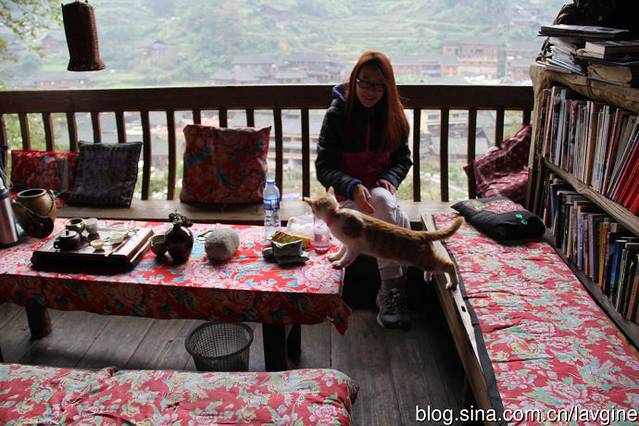 吉他,吧台,酒,一应俱全,可以想像下晚上大家围坐在一起,喝着小酒听着吉他,陶醉在这西江夜。白天又回归浑朴,与苗族人融合在一起,这种日子,谁不想过?