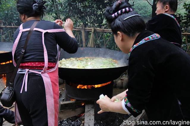 逛着逛着就看见做长桌饭的苗族人们。杀猪的杀猪,炖菜的炖菜,一问200块一人,还是算了八。400我们俩人那去别的地方能吃山珍海味了。