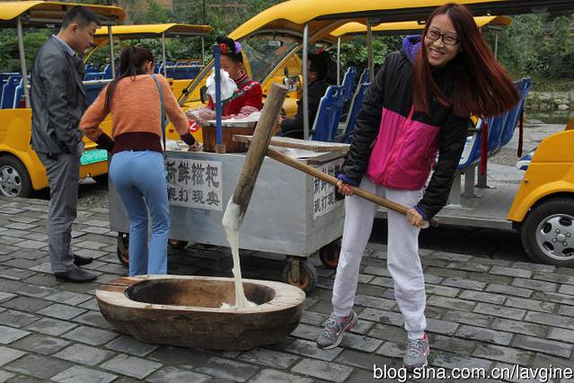 打了下糍粑才知道,这真不是一般人能打的动的。打了2下,我的胳膊就酸了。糍粑--就是凝聚了劳动力的食物。