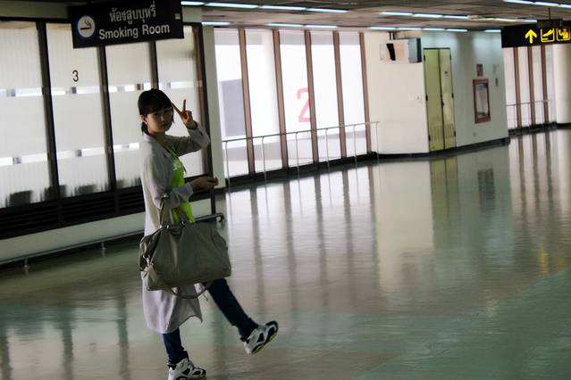 11.21 到重庆,先做轻轨到飞机场。在这期间我们找一个有吃早饭的地方吃了早饭,其实就是在麦当劳里吃了一个小型汉堡。因为是10点的飞机就速速赶到机场,没多久就换了登机牌再等了。等灰机的过程那是各种紧张+激动的情绪。然后上了灰机,三个小时后,听到空姐说,让把表调快一个小时。我们已经到泰国了!!!嗯~占便宜多活了一个小时。哈哈!