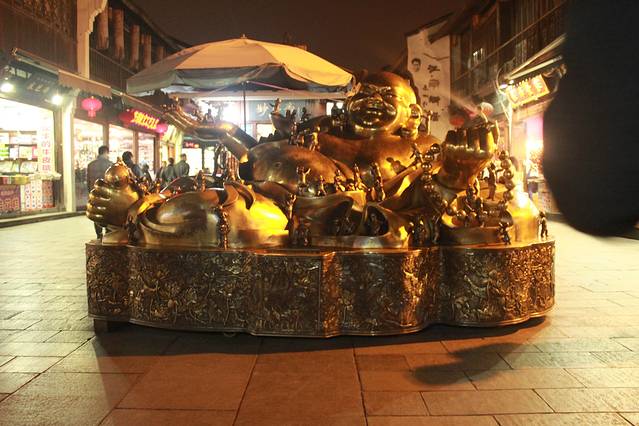 游完西湖已经傍晚了 没有去灵隐寺 游船的候那师傅介绍景点 说到清河坊南宋御街 临时决定去那里 下了船打了个的就过去了 小吃特产一条街 一直在吃吃吃 最后狂奔赶公交回来..