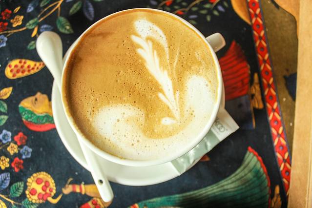 下午冷得时候纠结回不回去加衣服 去了个咖啡馆避了避风 卡布奇诺 一般般吧