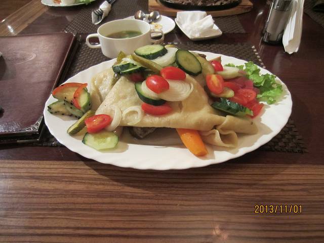 当地的饭。。。下面盖着一块牛排。有点吃不惯