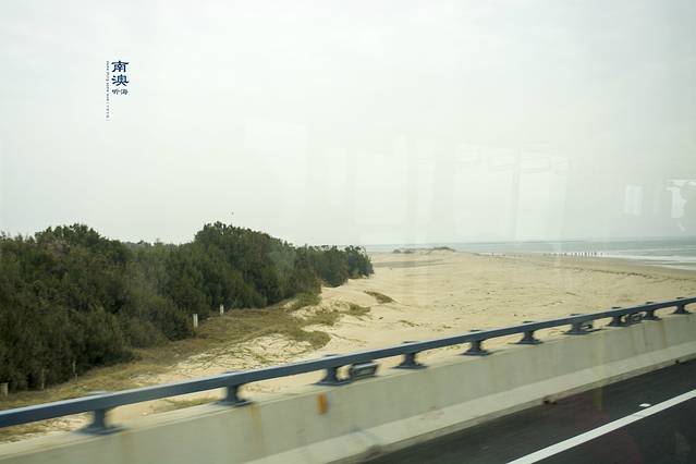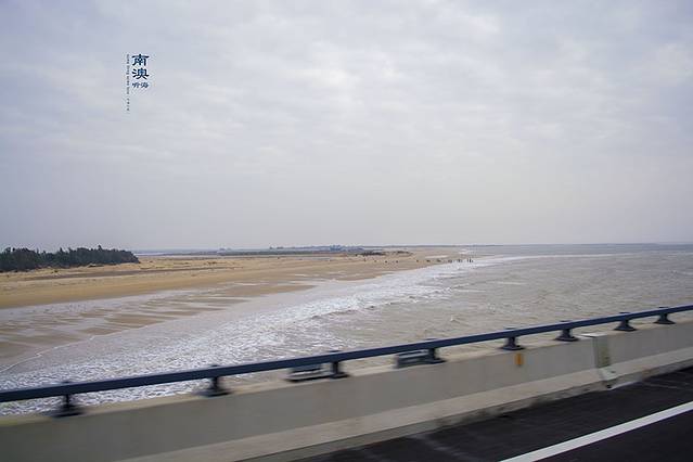 启航乘坐161路公交车在9点10分上南澳大桥,9点23分下桥,因为是冬天和今天天气不是特别好,所以桥通车速度较快13分钟过桥。上桥一会就可看到沙滩和大海。