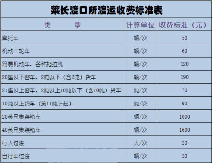 附上渡口收费表价格为双程票价