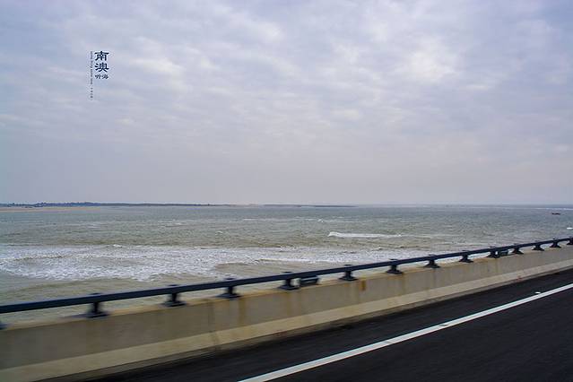 在桥上跨过茫茫大海后即可看到远处的南澳岛。