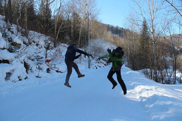 这一段路程的美,能满足你对雪的各种憧憬,让你尽享其中。一早,7点左右,吃完早上,出发,正好下着雪,心情各种美好,一路上15公里,上山10公里,下山5公里,全程我们花了6小时纯徒步。还好买了狼爪和雪杖,帮了不少的忙。而我觉得图片拍不出全程的自我感受,只有亲身经历才知道这个穿越不枉此行。