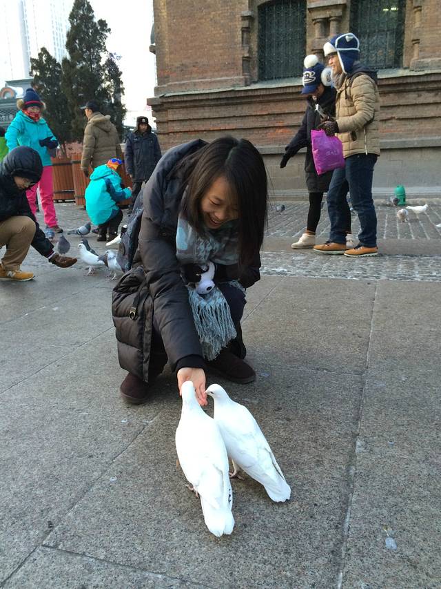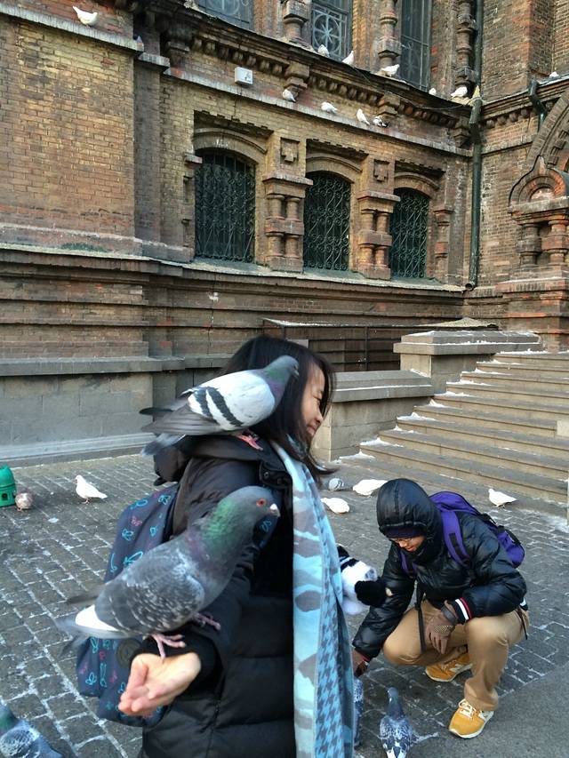 买了实物,开始喂起了鸽子,似乎回到了电视剧里的场景,不过不美好的是,鸽子脚踩的衣服都脏了,而且那还有人在监督,不允许我们靠的太往里。