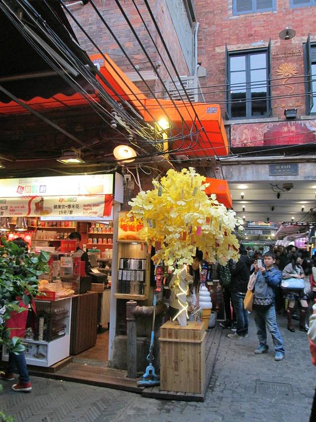 田子坊是我这一天当中玩的最开心的地方,就喜欢这种洋溢着浓浓文艺气息的小地方,如果人再少点就完美了!田子坊的小店和小巷都特别美,适合在里面闲逛,发呆,拍照! 各种充满文艺气息的小店构成一条条充满意蕴的小街小巷,错综复杂!和北京的南锣鼓巷和烟袋斜街有点像。每一个小店都很有特色,感觉店主对自己的店都非常用心,非常有感情的感觉,看上去每个店都有一段故事!东西不贵,豆花非常好吃,在里面闲逛,每一个小角落、小细节都值得你驻足、惊叹,甚至会在击中你内心中一个柔软的角落,让你久久不愿离开!