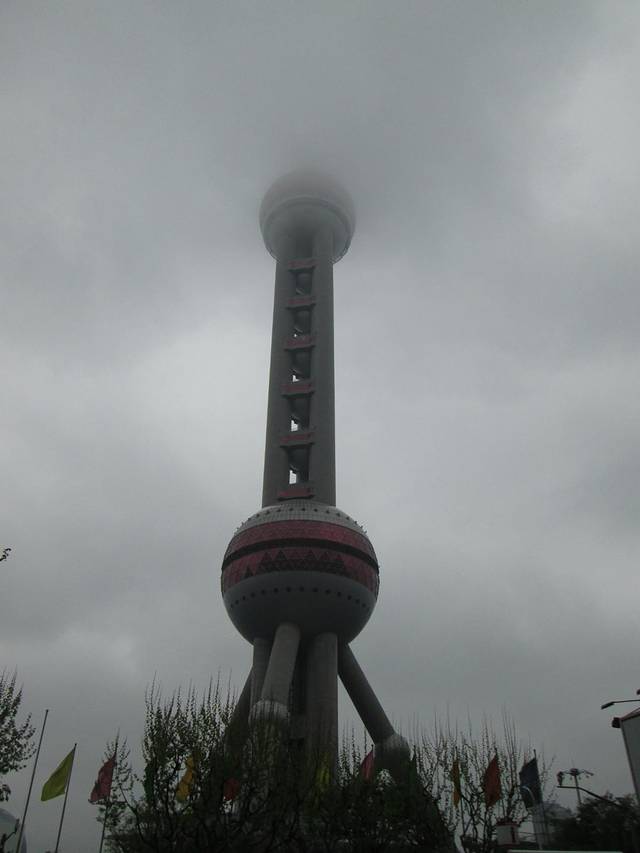 东方明珠塔也在这一堆建筑中,当时我们只在下面观摩了一下,没有进去,很多人都排队买票进入塔里参观,听说可以俯瞰上海市,但是我想这么大的雾,应该什么都看不到吧。东方明珠,上海的标志性建筑,如今和其他一些更宏伟的建筑相比,它并不是那么突出,但是他的标志性地位还是不容撼动的。