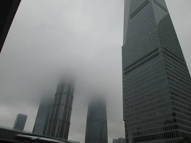 陆家嘴附近就是上海的金融中心了,我们到的时候是上午九点多,雾气真的很重啊,这些参天的建筑基本上半部分全部都在雾气中,更给人一种神秘的感觉,特别有趣。雾气散去后看着这些高耸的建筑真的有一种敬畏感,站在这些建筑脚下感觉自己好渺小,看着他们有一种不真实的感觉。
