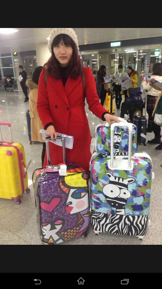 拉轰的旅行箱也是旅行必备,塑料材质轻巧,方便背货回去。