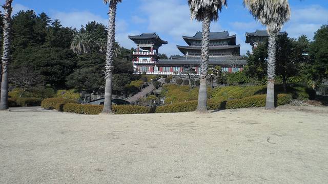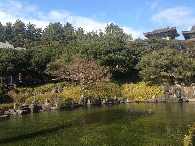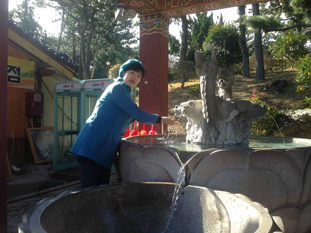济州岛的这几天,天气很好,而且那里空气质量很好,蓝天白云很漂亮。到了药泉寺,如果要进去,是要脱鞋的,就连进宾馆里面房间都是要脱鞋子的。