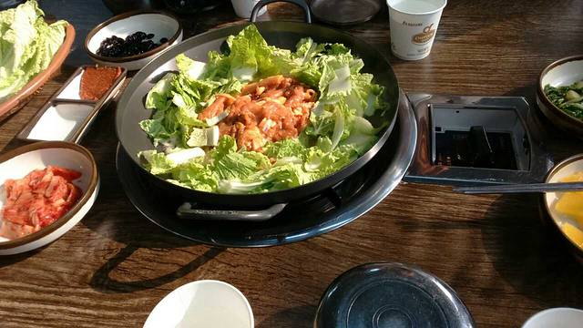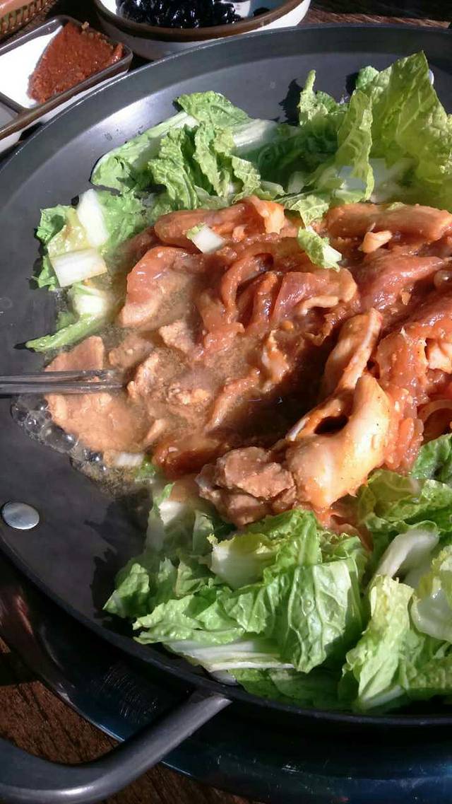 黑猪肉的烤肉锅,这种烤肉和煮没区别,那种烤的好吃,在莲洞那里有很多正儿八经烤肉店,还可以。