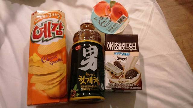 天天喝各种的饮料,最好喝的还是香蕉牛奶,在韩国香蕉味牛奶是含量高的。