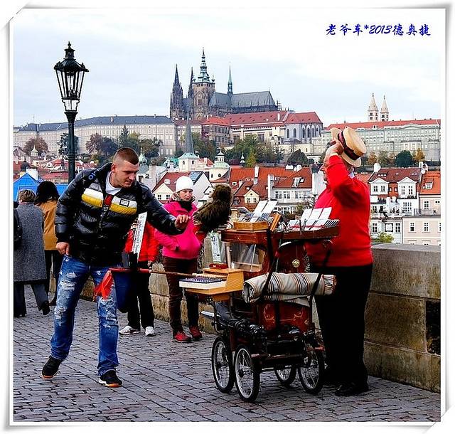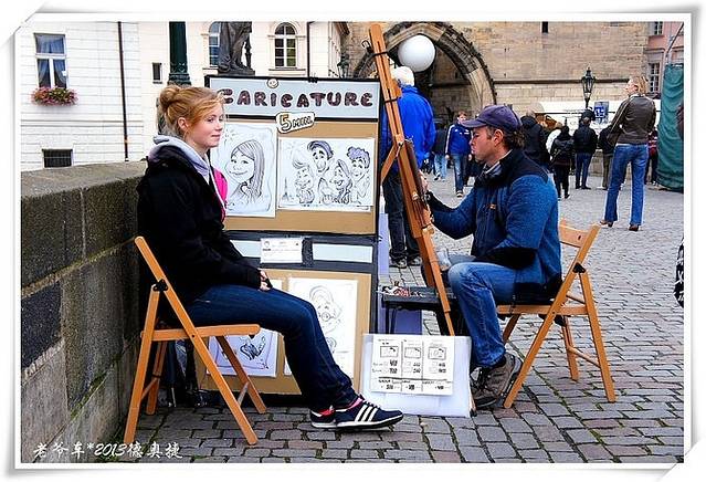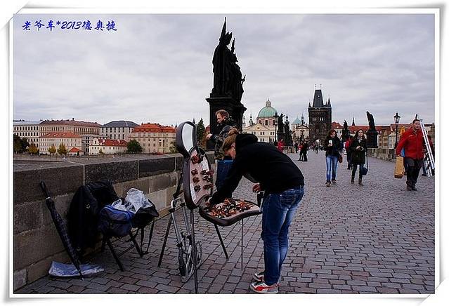白天查理桥上游人真多,卖艺的,卖画的,速写的,喝着咖啡发呆的......各种人生百态。