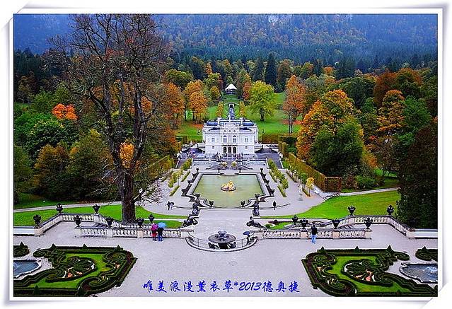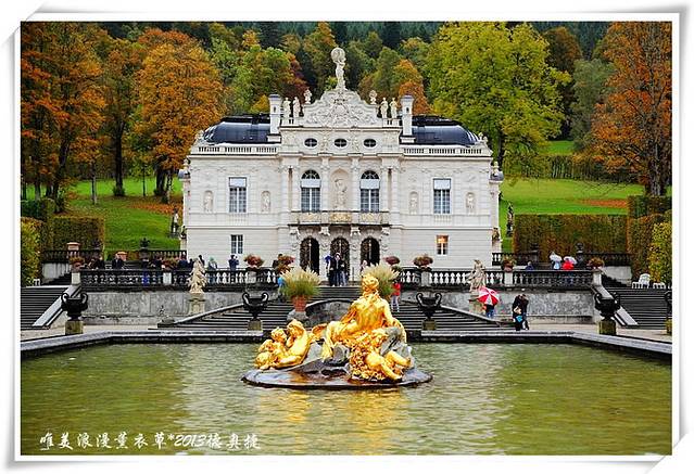 林德霍夫宫坐落在僻静的格拉斯山谷中,它虽然比新天鹅堡建得晚,但它是惟一一幢国王在世时完工的宫殿建筑,于1878年建造完成。通往它的山路蜿蜒曲折,但一路上风景迷人。