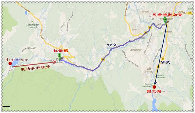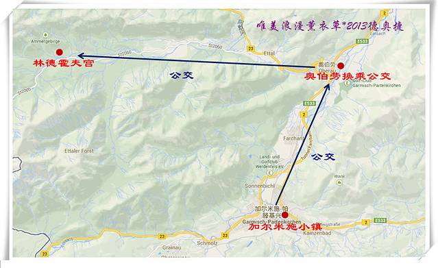 乘汽车,9:00以后州票可用,去林德霍夫宫示意图。