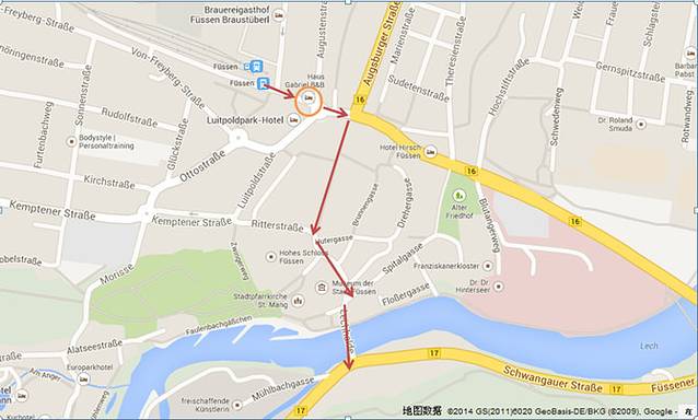 资料上对福森的介绍很简单:福森fussen是罗曼蒂克大道的终点站,位于德国与奥地利的边界,阿尔卑斯山脚下。莱希河lech流经此处,附近并有佛根湖forggensee,是个风景宜人的纯朴小镇。嗯,风景宜人、纯朴小镇,这正对我的胃口!
