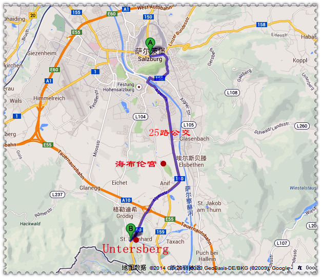 从Untersberg到Hellbrunn宫这一站只需几分钟路程。