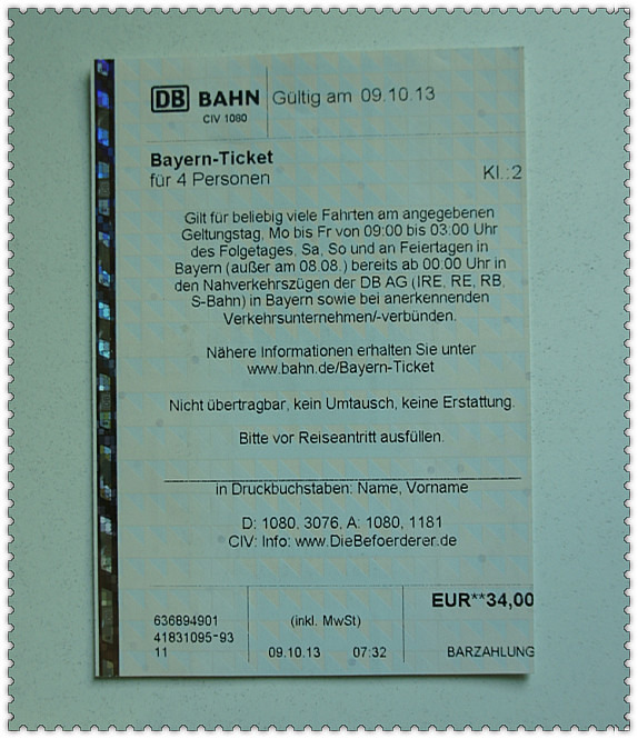 在自助售票机上买了拜仁州州票,34欧元/2-5人,略过慕尼黑,直奔福森